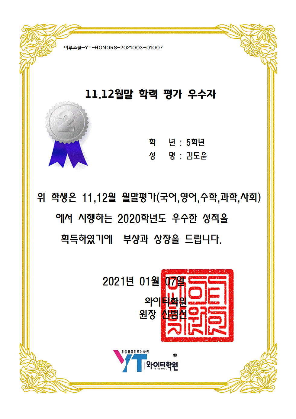 월말평가 우수자 2등